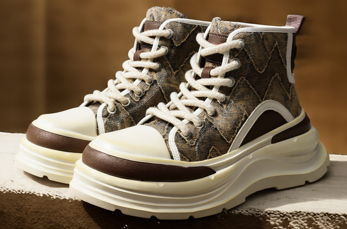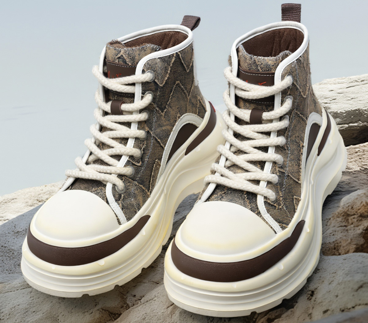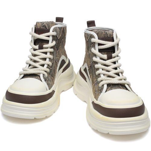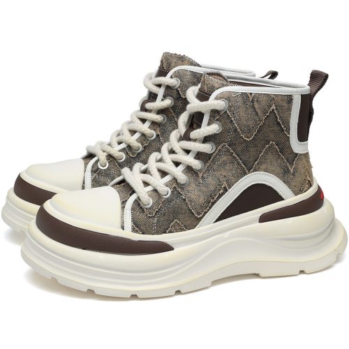 Mens Wavy Patch Overlays High Top Platform Fashion Skateboard Shoes