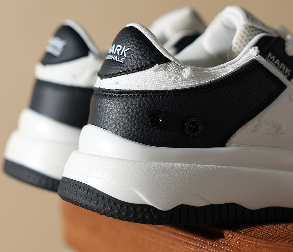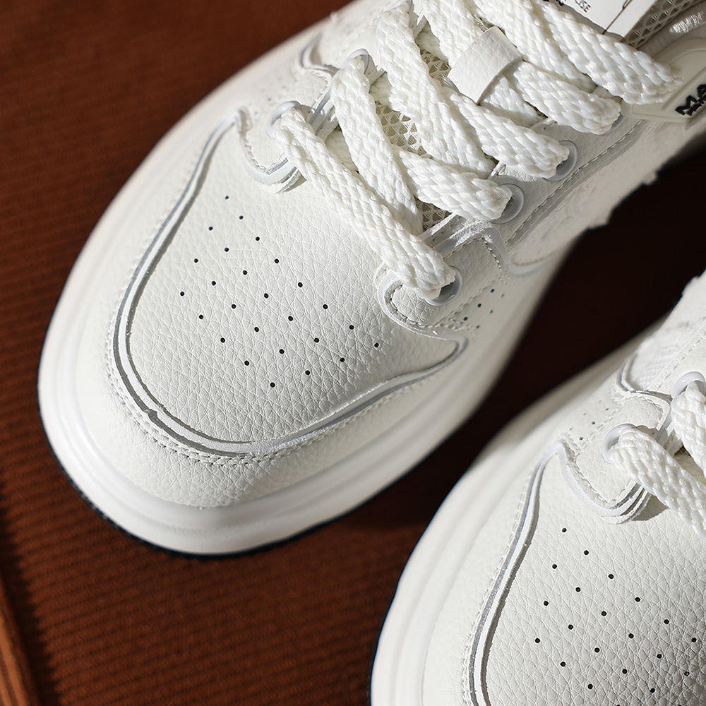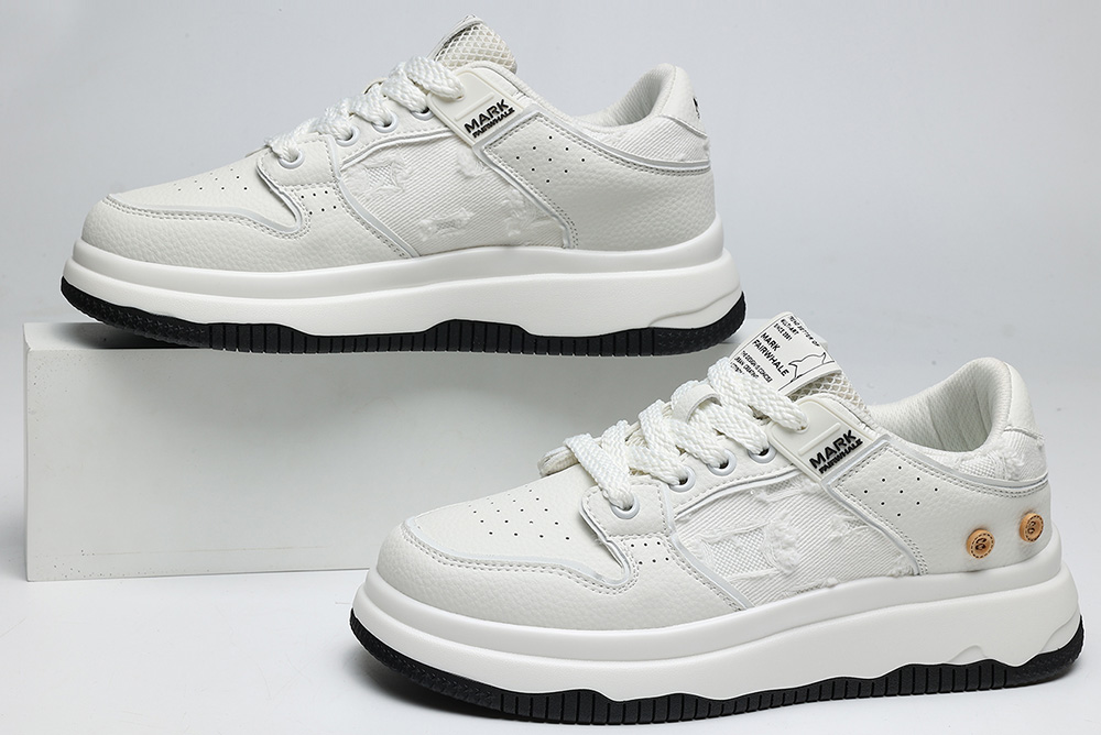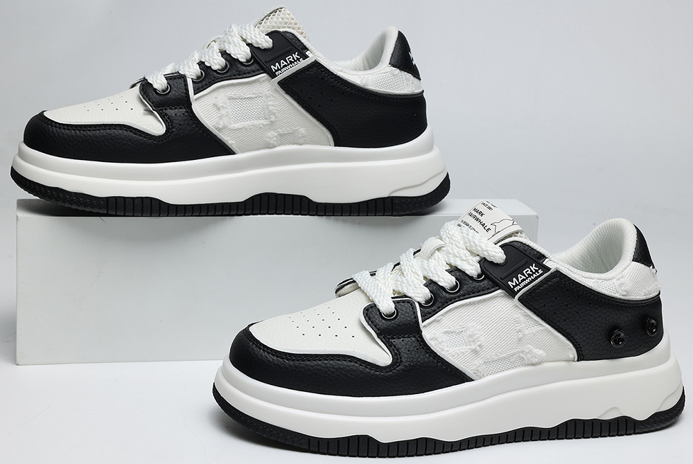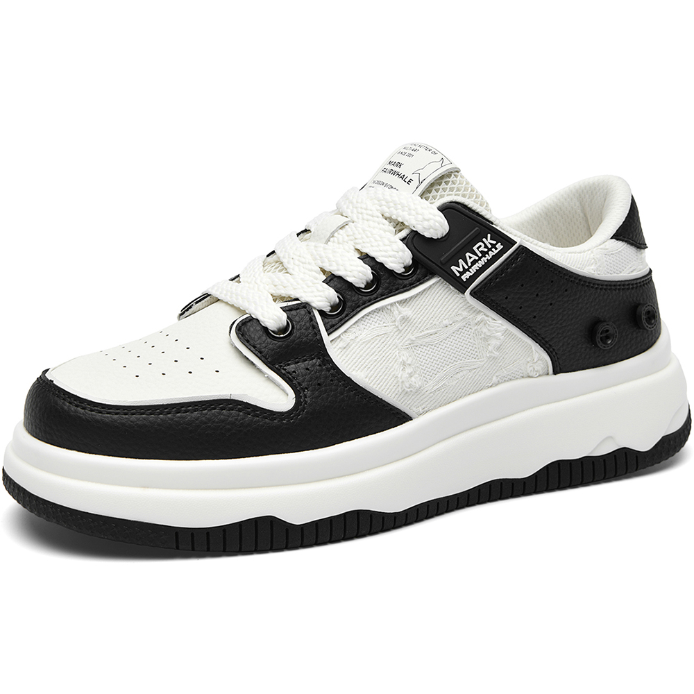 Mens White Plus Black Textile and Leather Blocking Breathable Skate Shoes