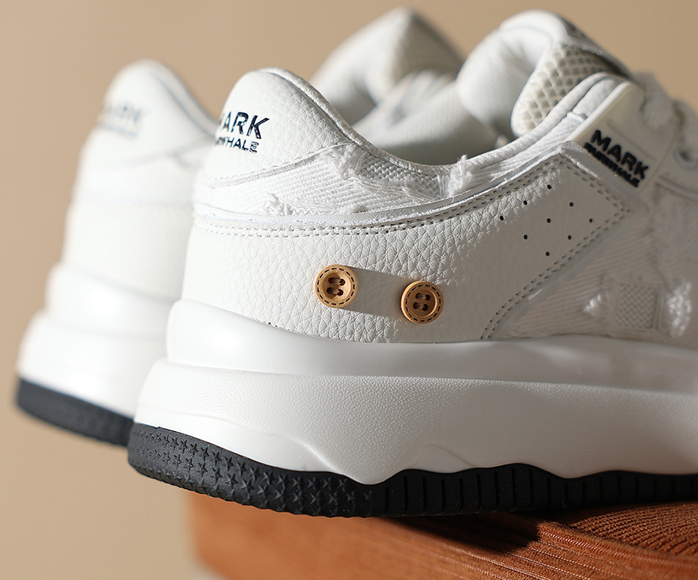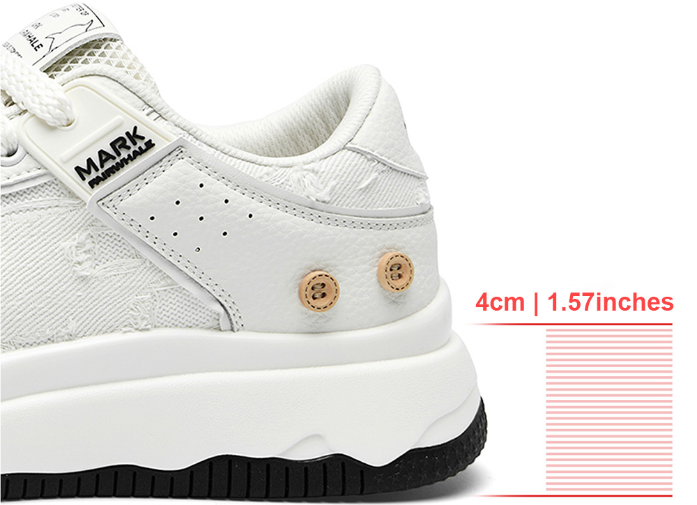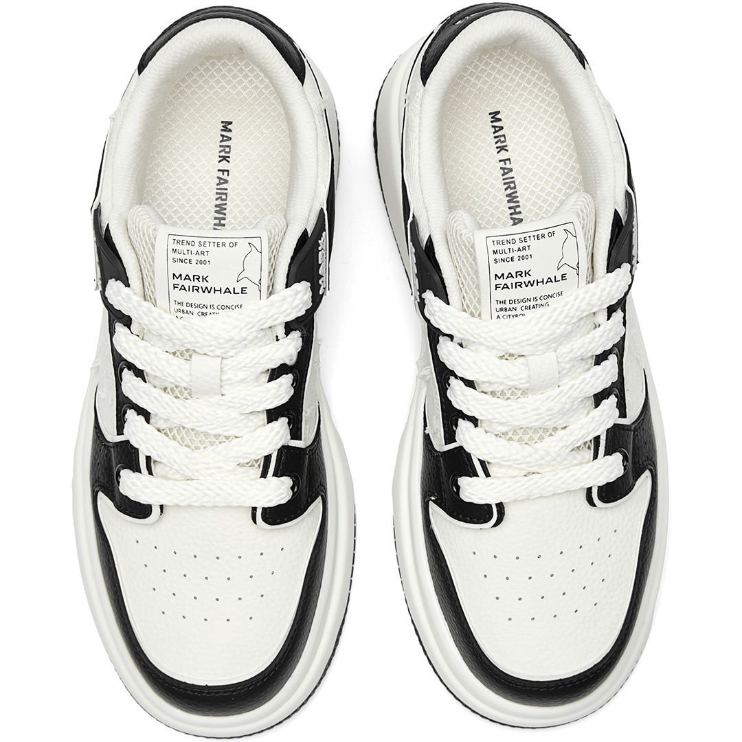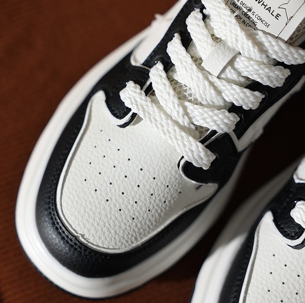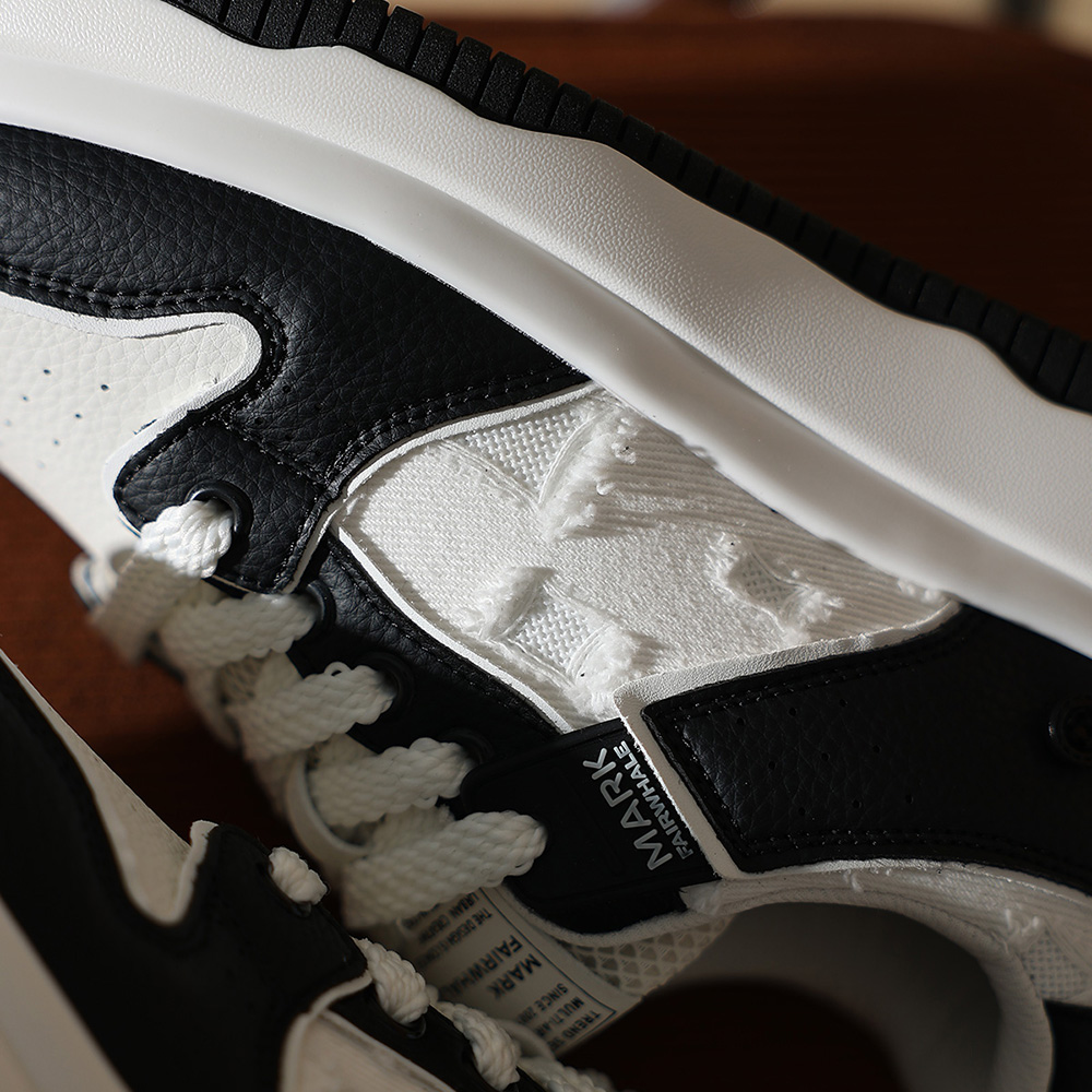 Mens White Plus Black Textile and Leather Blocking Breathable Skate Shoes