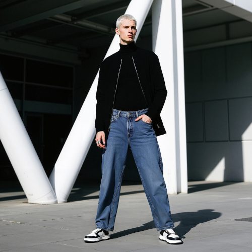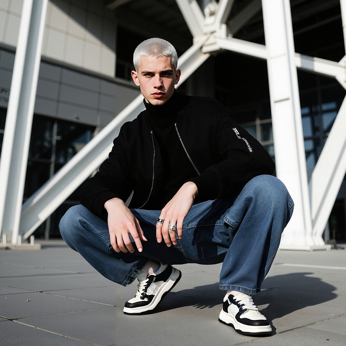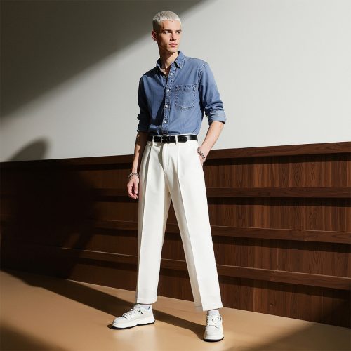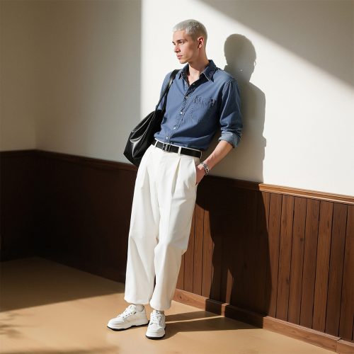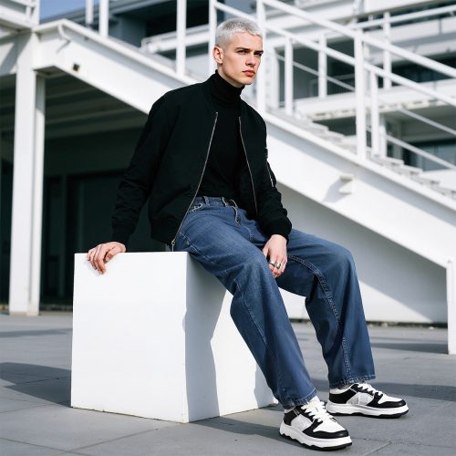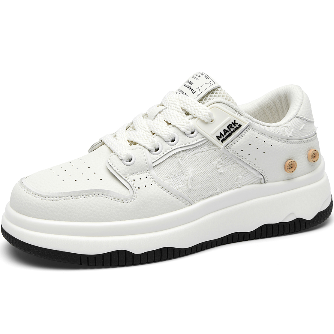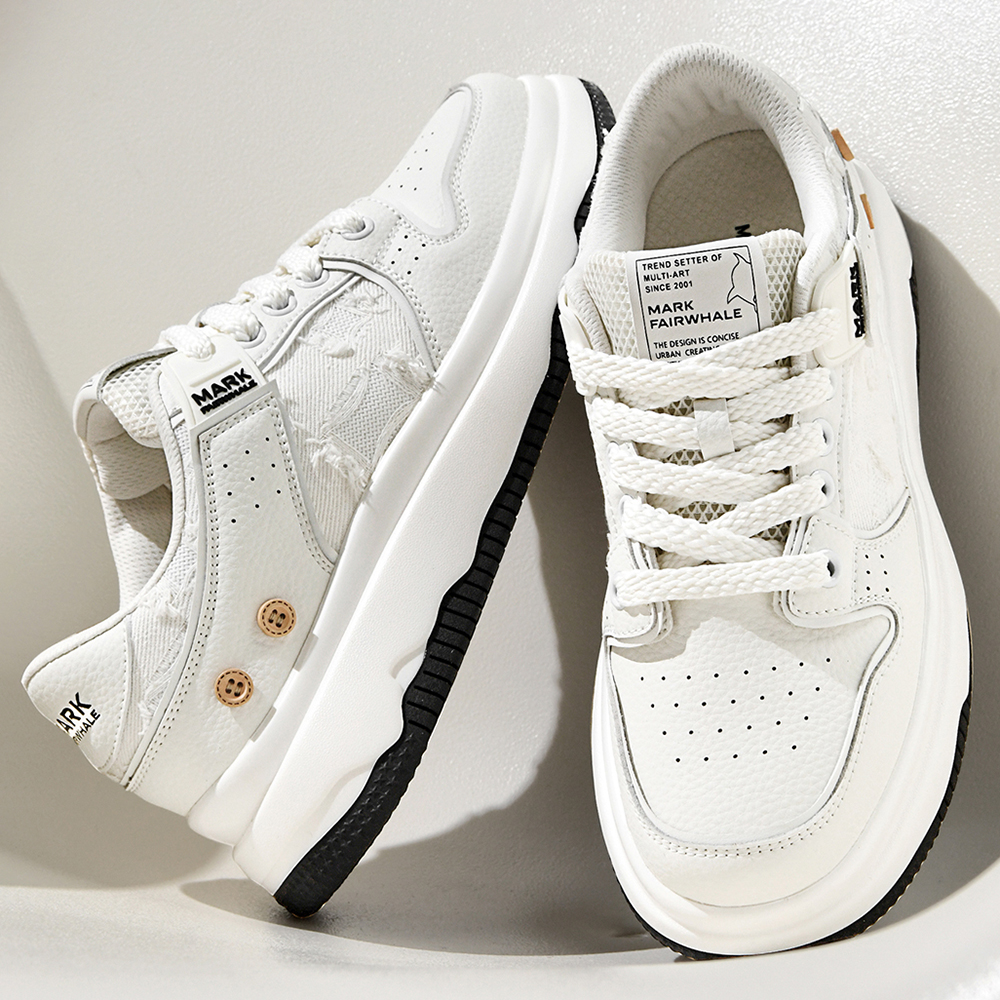 Mens White Plus Black Textile and Leather Blocking Breathable Skate Shoes