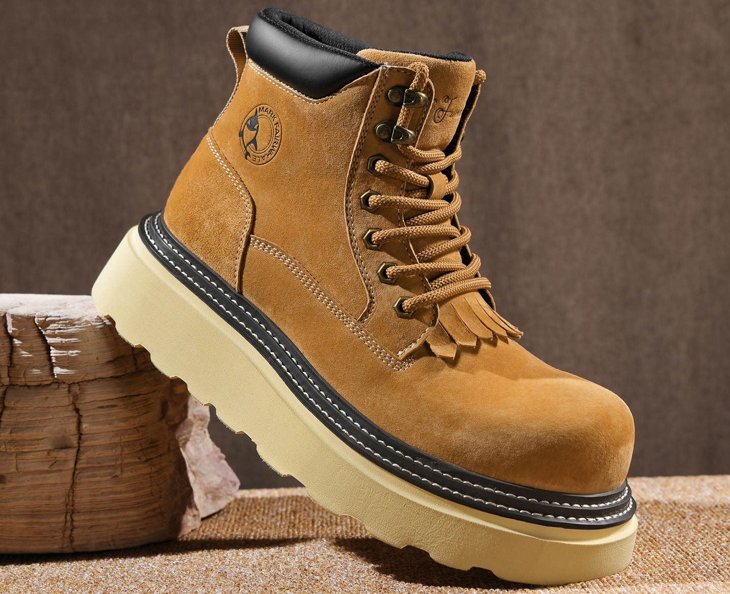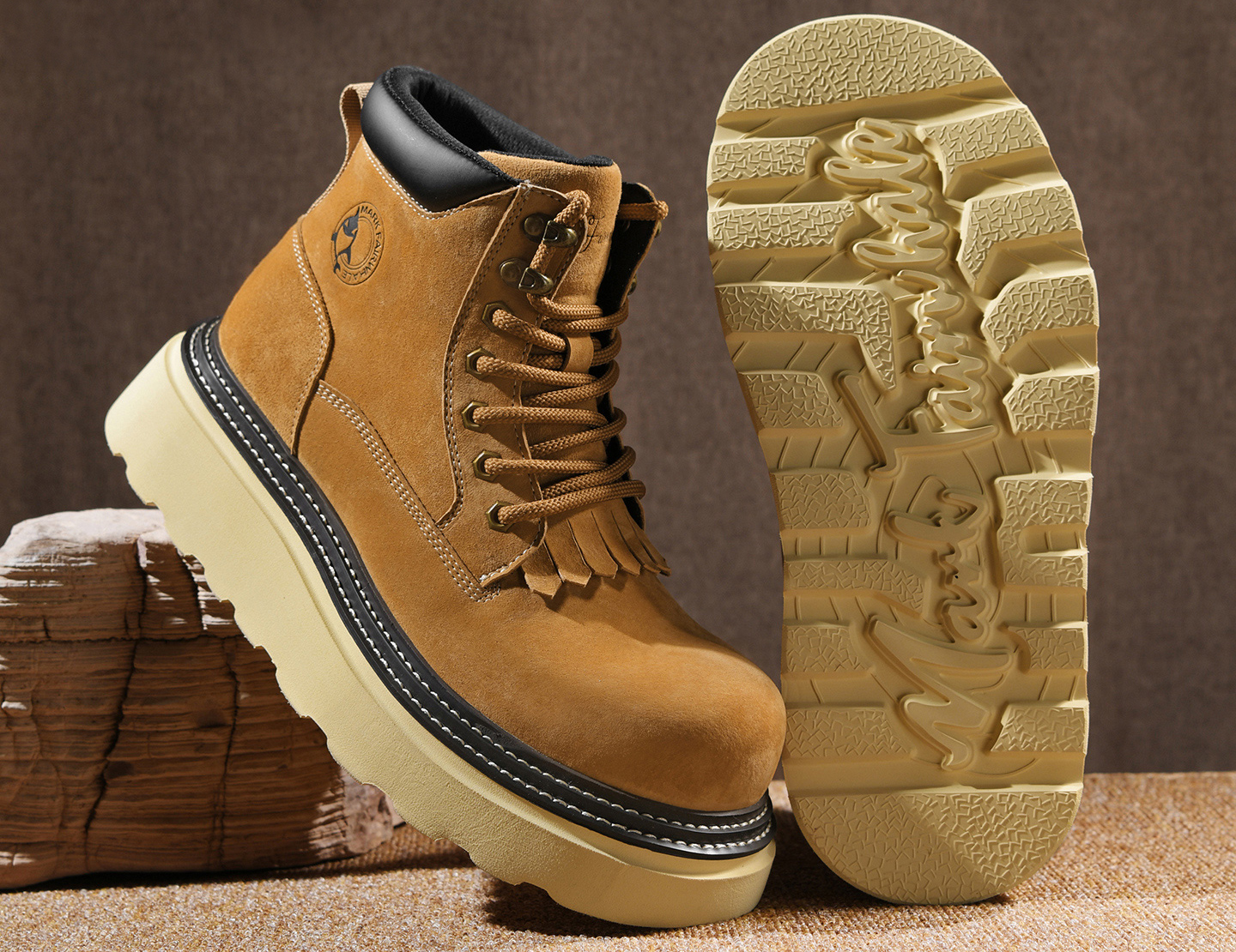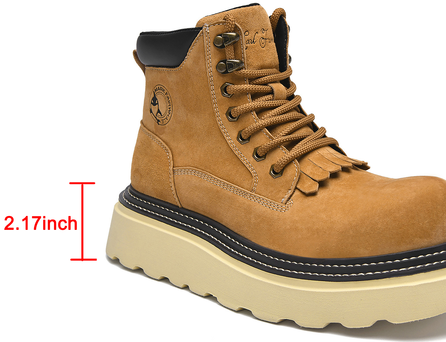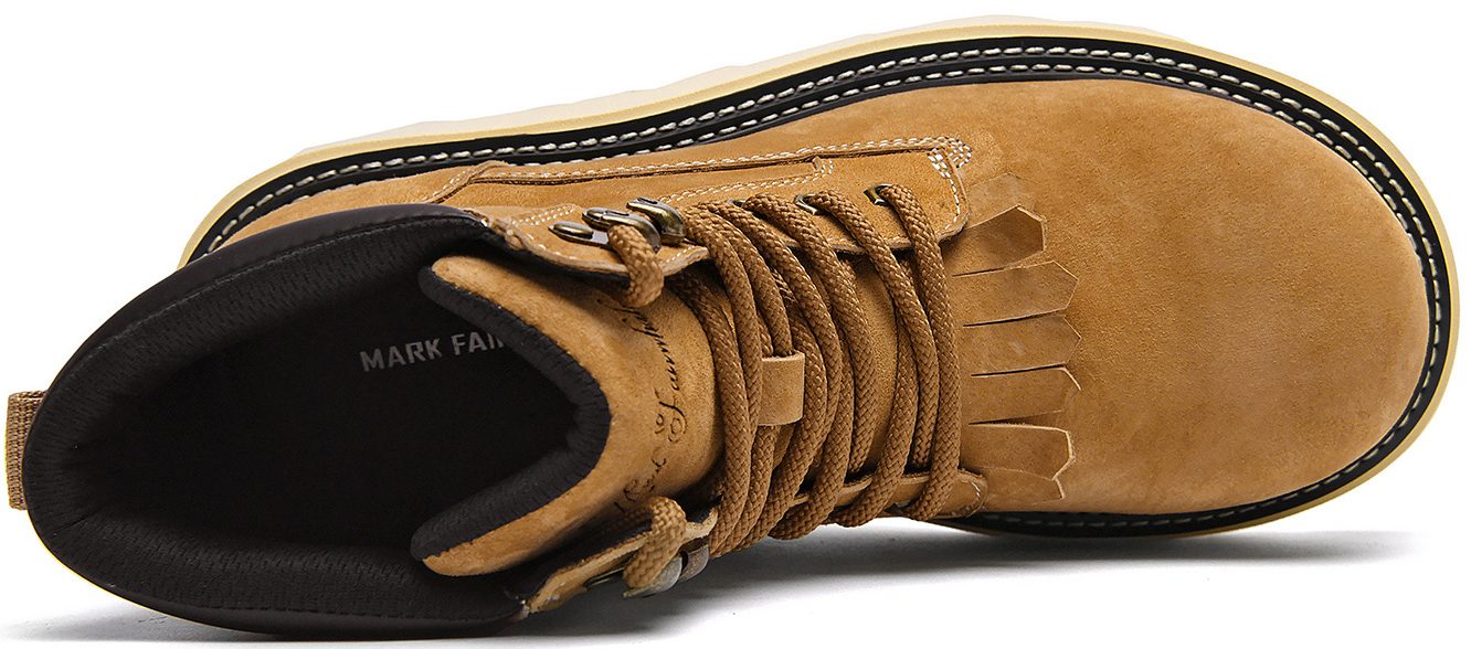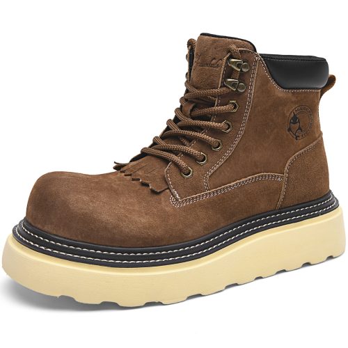 This men’s wide toe thick sole suede fringe tongue boot is a perfect fit for stylish guys: the 2.17-inch thick sole adds height subtly, the wide-toe design keeps feet comfortable without feeling cramped, and the suede texture paired with the fringe tongue boosts trendiness—ideal for daily commutes, seamlessly blending comfort and style!