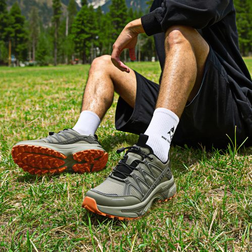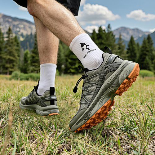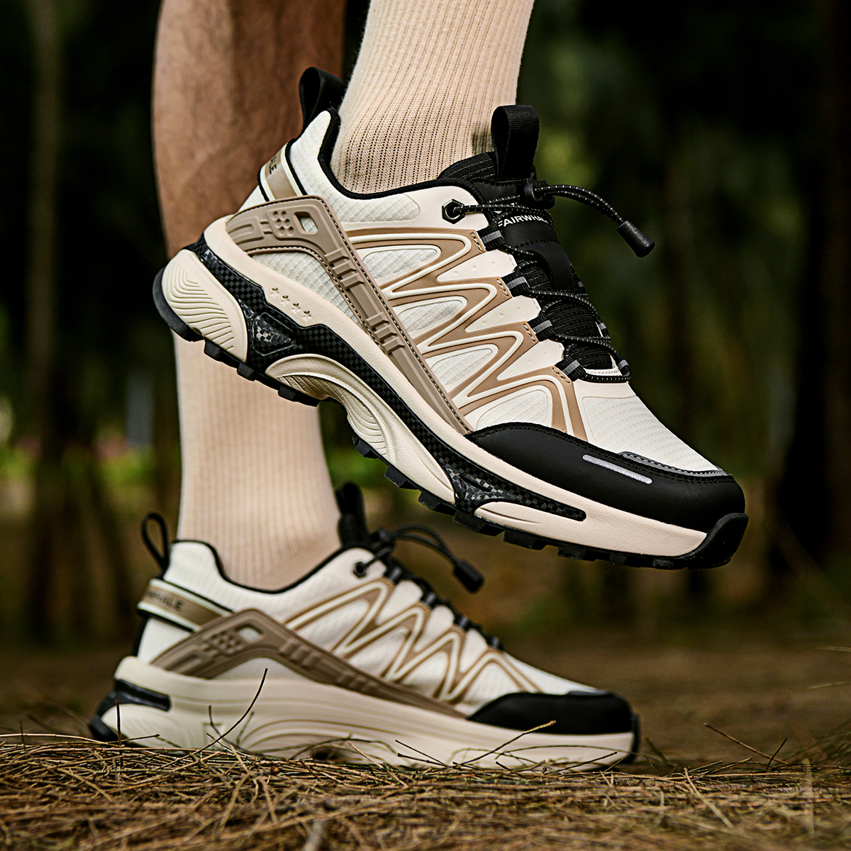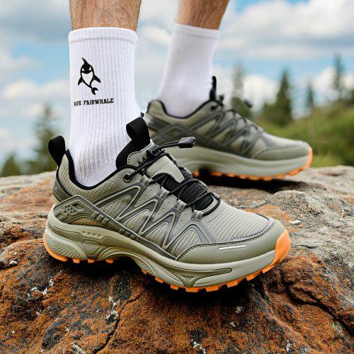 Quick Lacing Buckle Closure Textured Mesh Fabric Upper Outdoor Hiking Sneakers