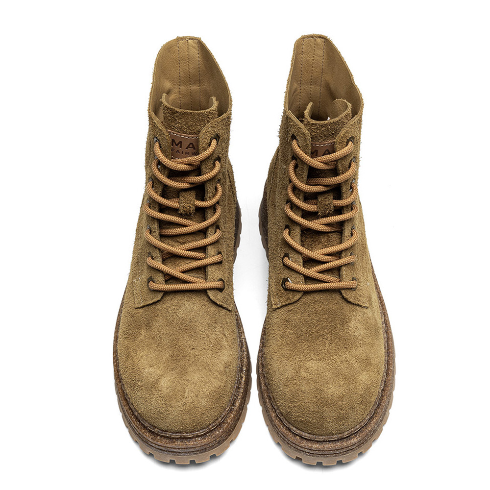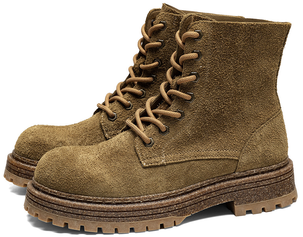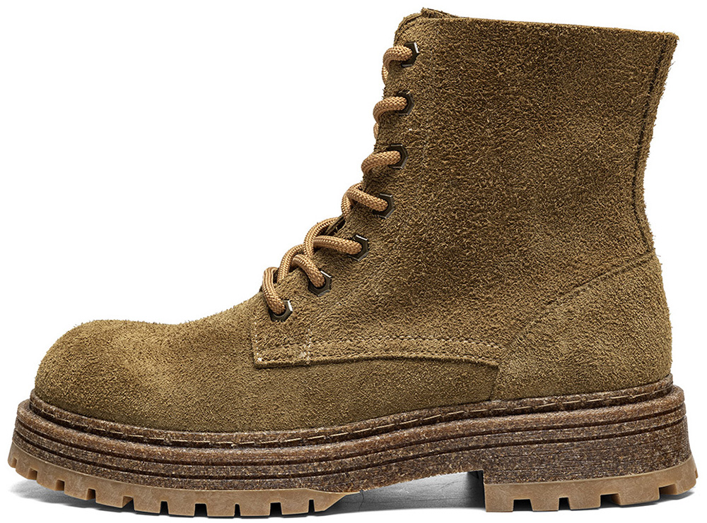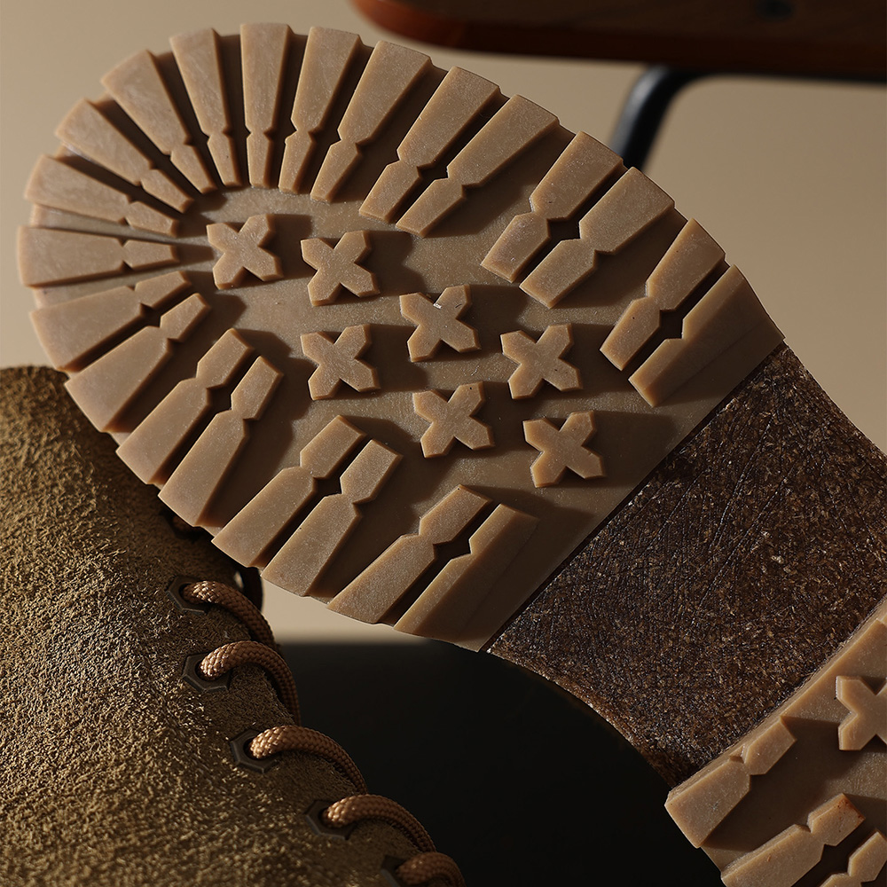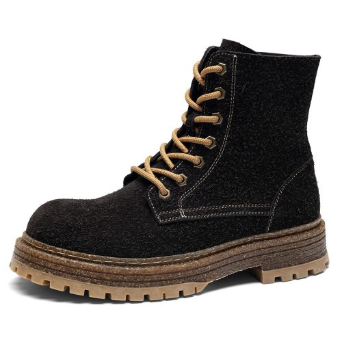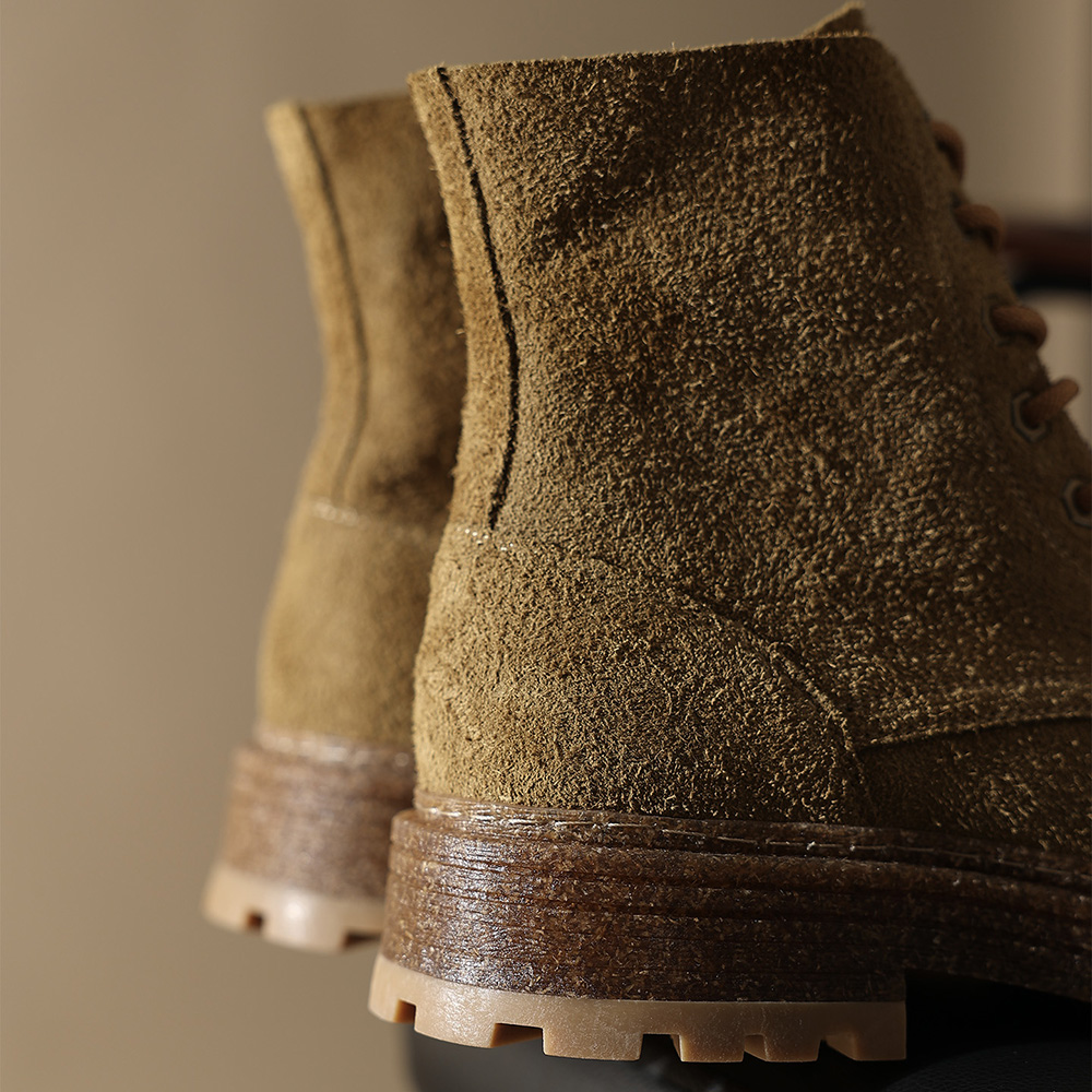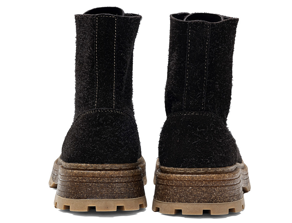 Retro Leather Chunky Sole Combat Ankle Boots with Durable Rubber Outsole