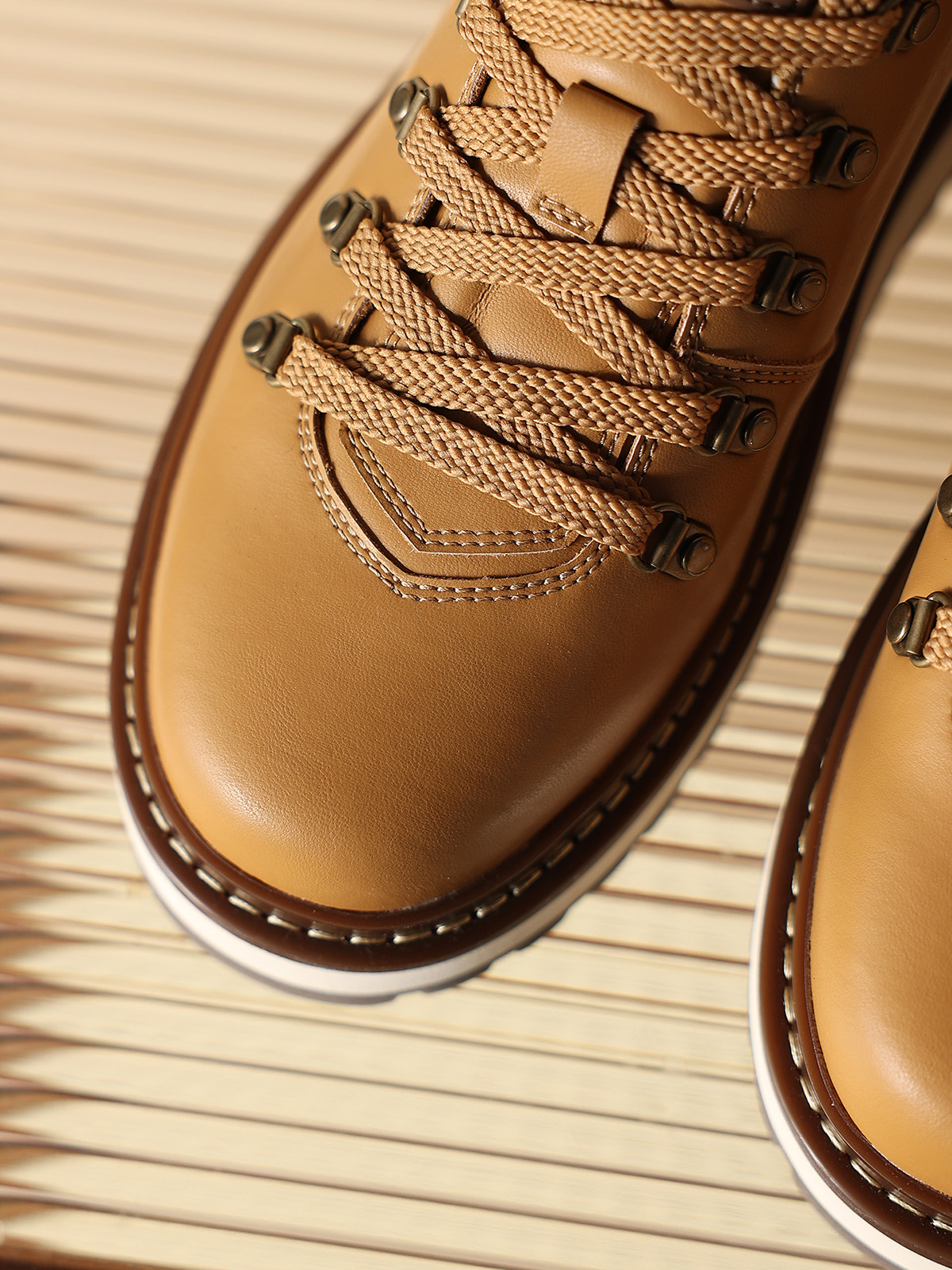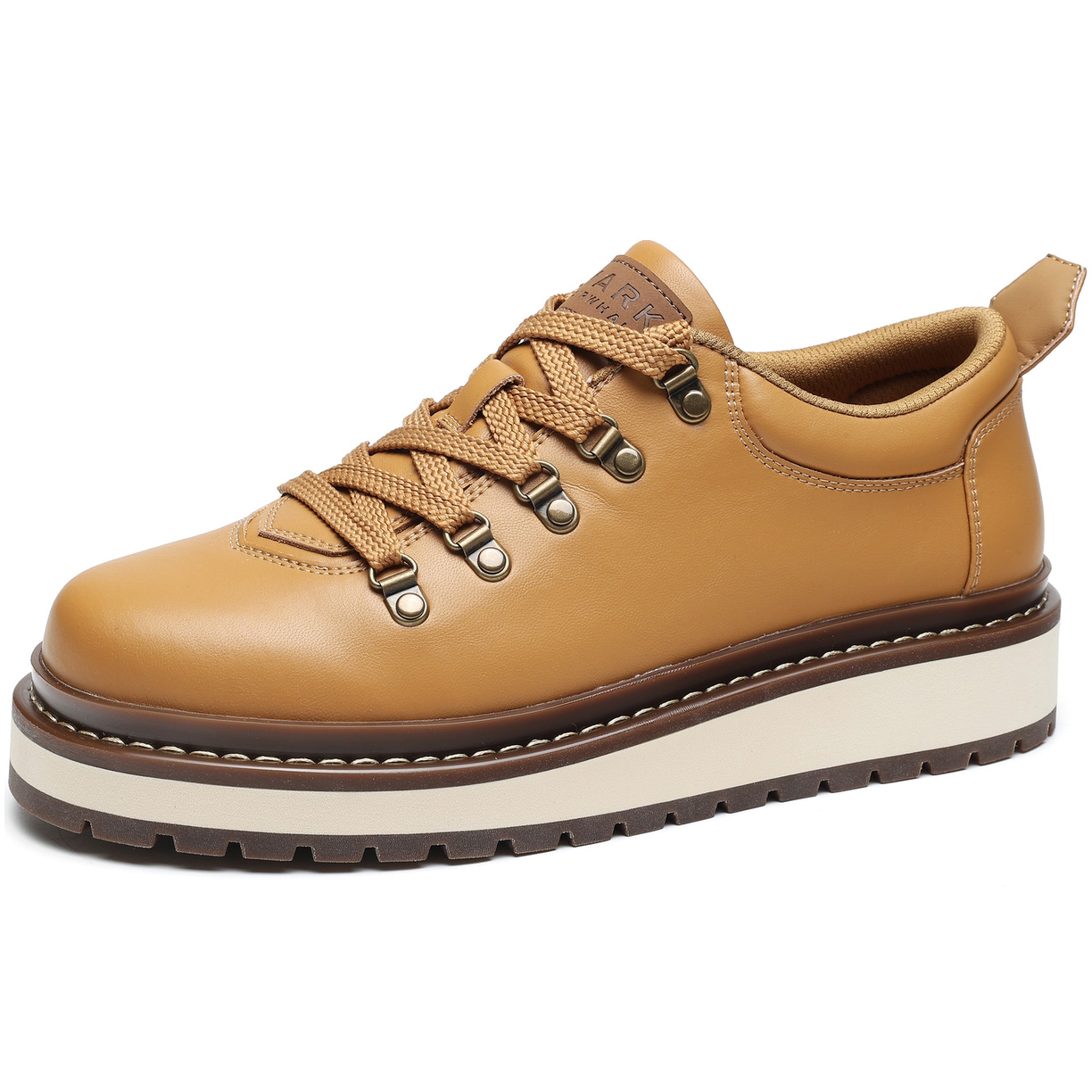 It perfectly blends urban fashion with comfort and practicality. The chunky sole boosts height steadily, the premium leather delivers a sleek texture, and the metal buckle adds sophistication, easily matching various outfits.