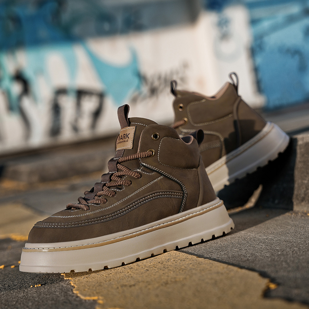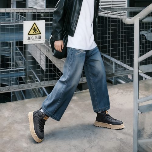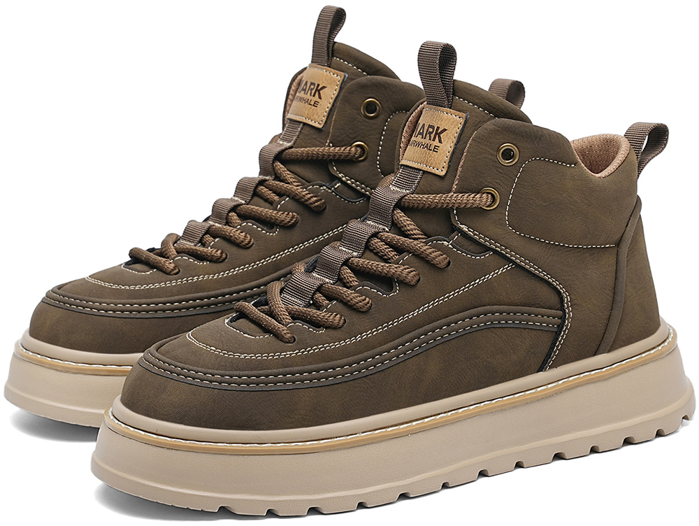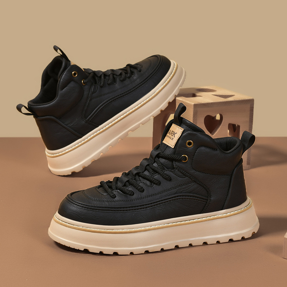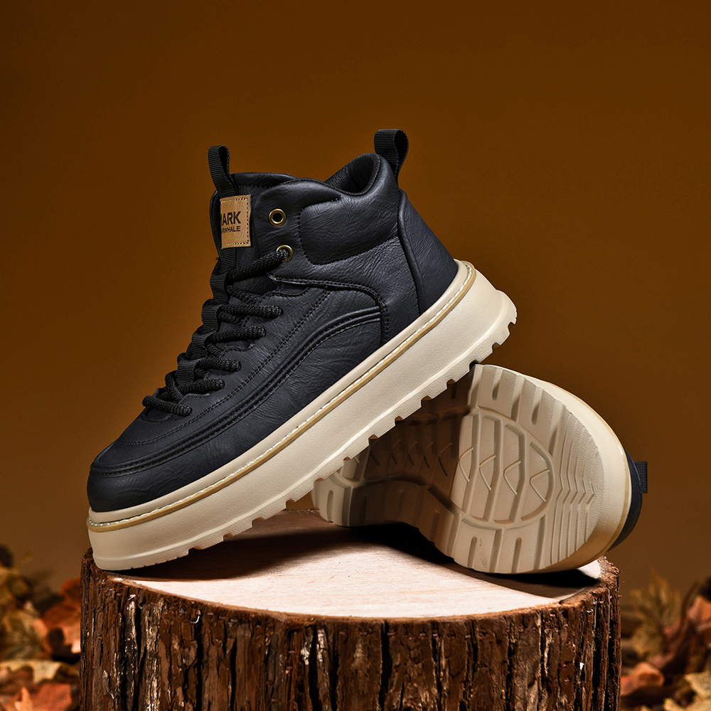 These boots blend rugged style with everyday comfort, designed to elevate your casual and outdoor looks. Crafted from durable synthetic leather, they feature a high-top ankle-hugging design for superior support, a chunky platform sole for added height and traction, woven laces for a secure fit, and eye-catching stitching detailing that adds a touch of craftsmanship. Perfect for daily wear, outdoor activities, or street-style outfits, these boots balance durability, comfort, and on-trend design seamlessly.