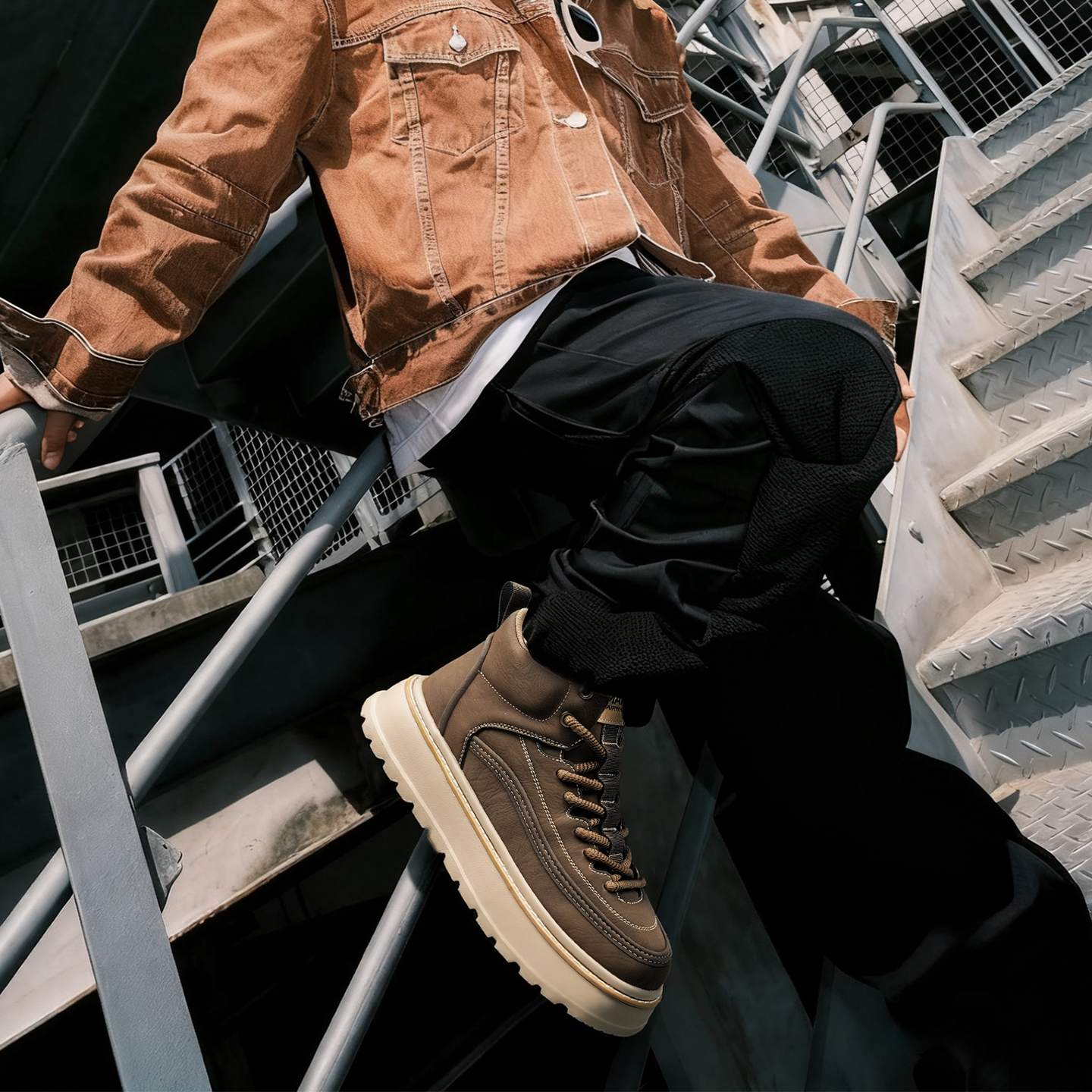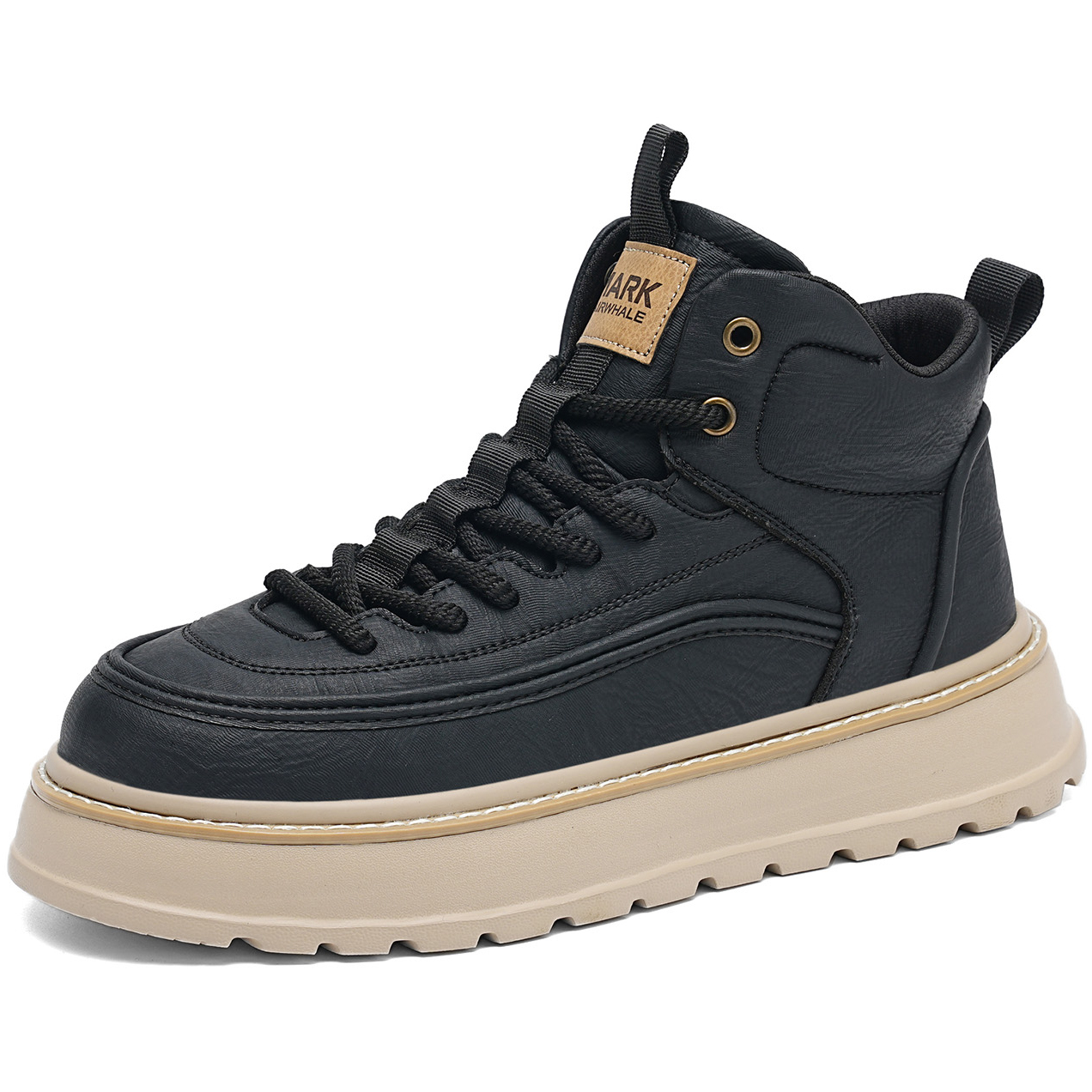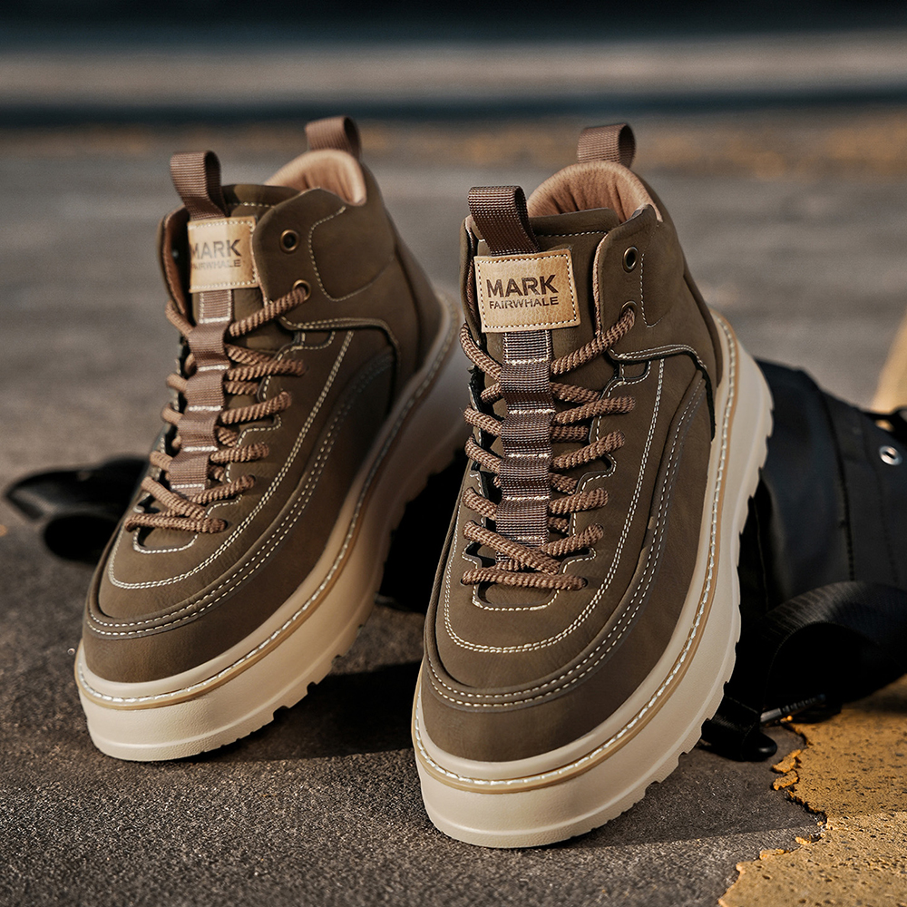 These boots blend rugged style with everyday comfort, designed to elevate your casual and outdoor looks. Crafted from durable synthetic leather, they feature a high-top ankle-hugging design for superior support, a chunky platform sole for added height and traction, woven laces for a secure fit, and eye-catching stitching detailing that adds a touch of craftsmanship. Perfect for daily wear, outdoor activities, or street-style outfits, these boots balance durability, comfort, and on-trend design seamlessly.