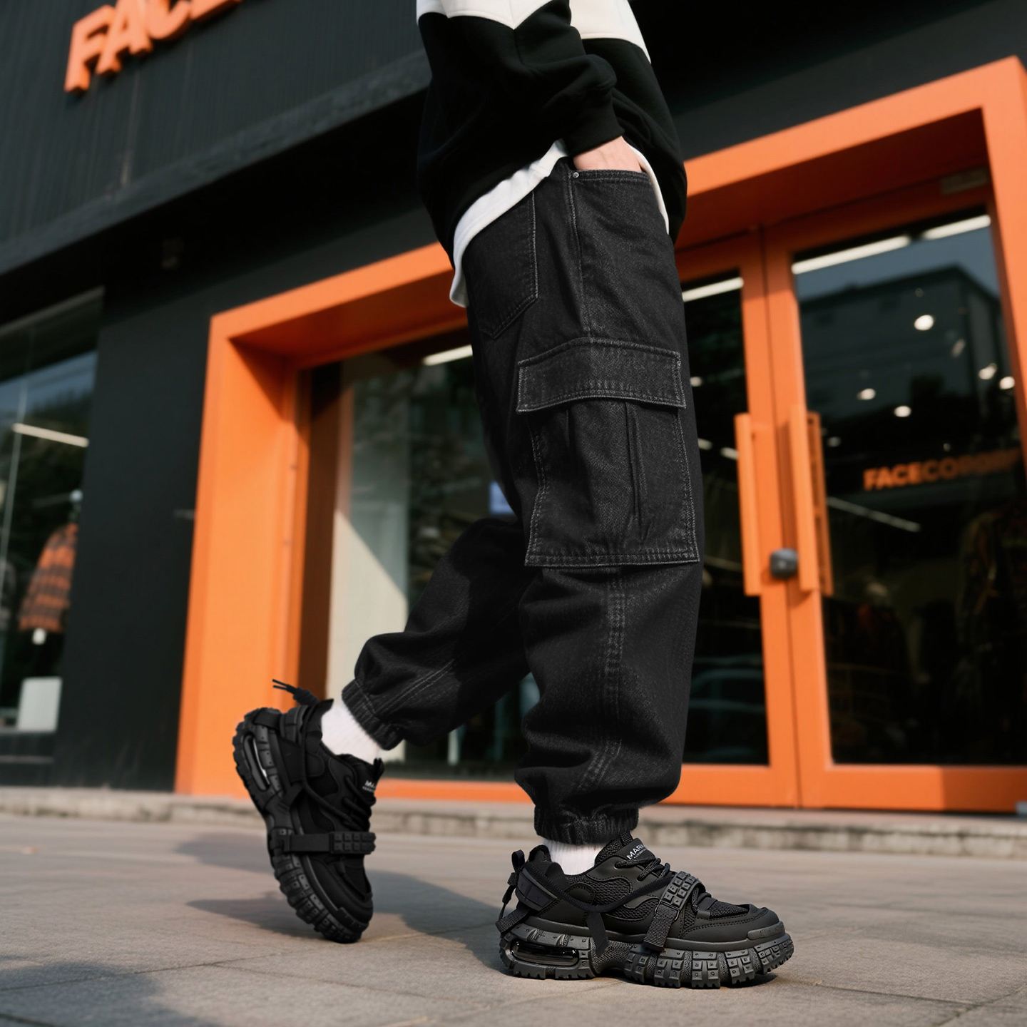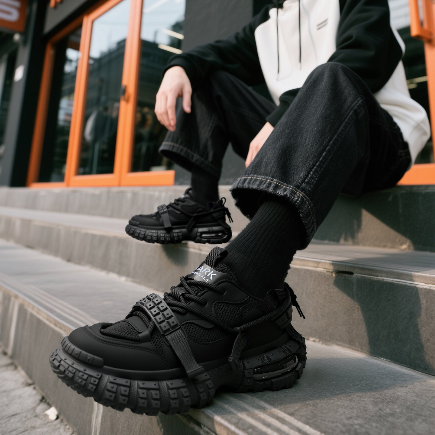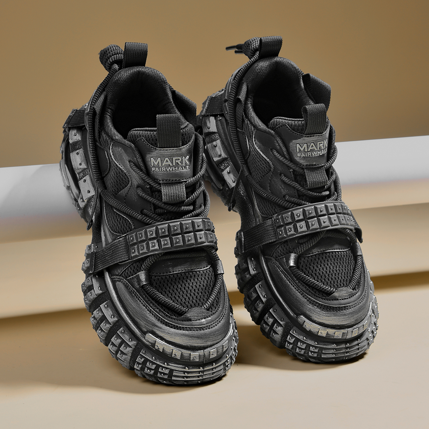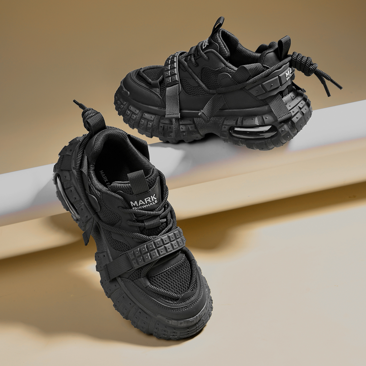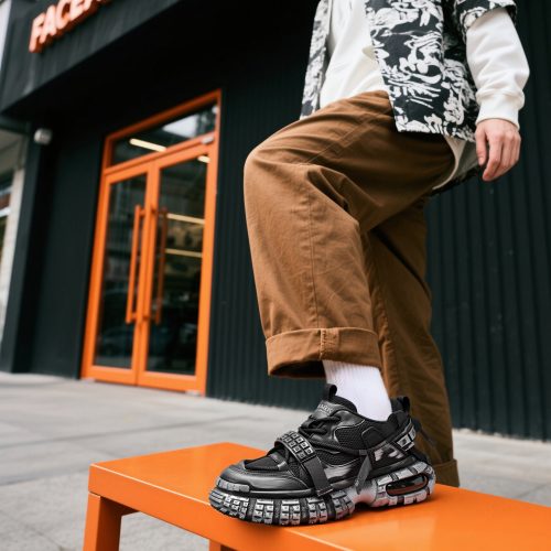 Tactical Style Lacing Mesh Sneakers with Lug Sole and Air Cushion