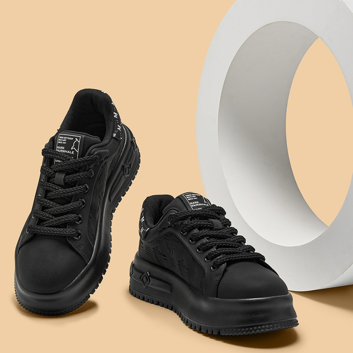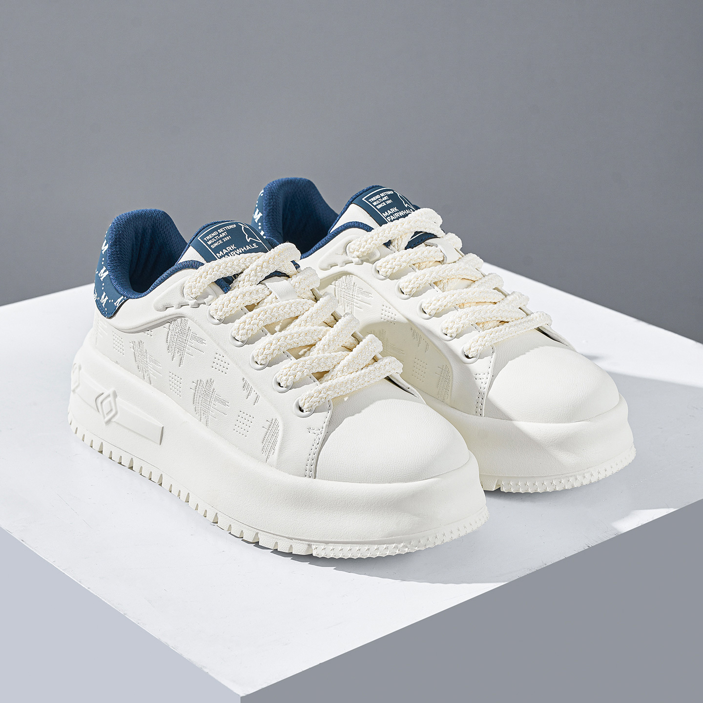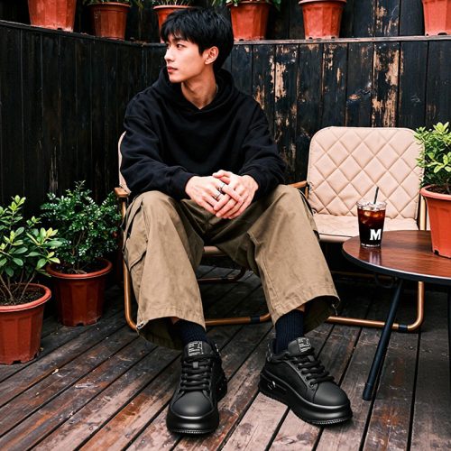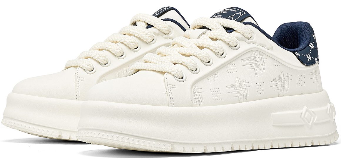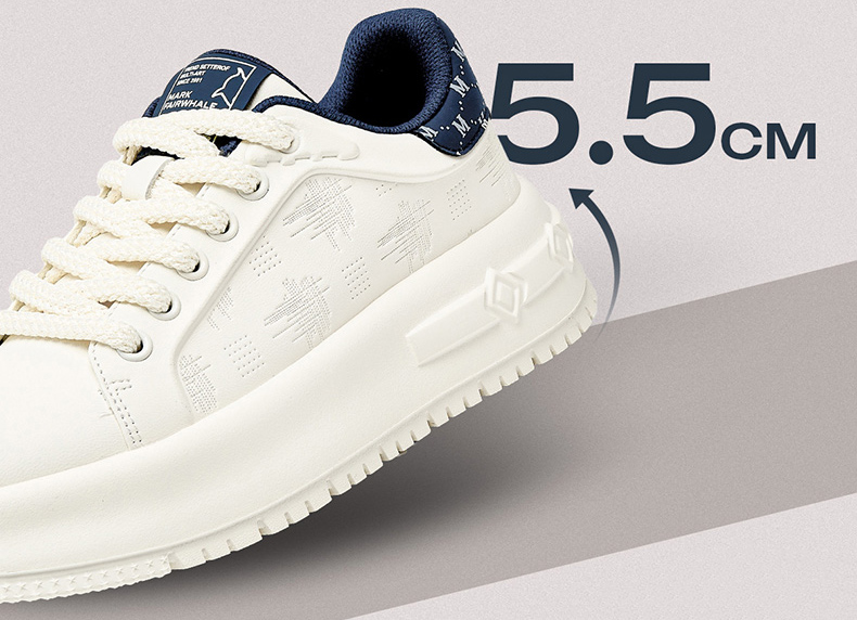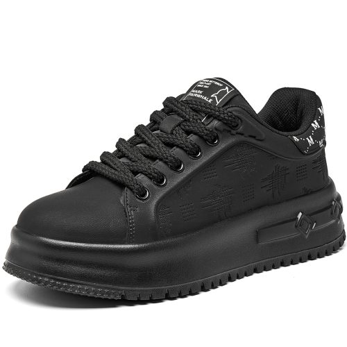 Textural Design Breathable Leather Platform Skate Shoes with Brand Print and Embossed Sole