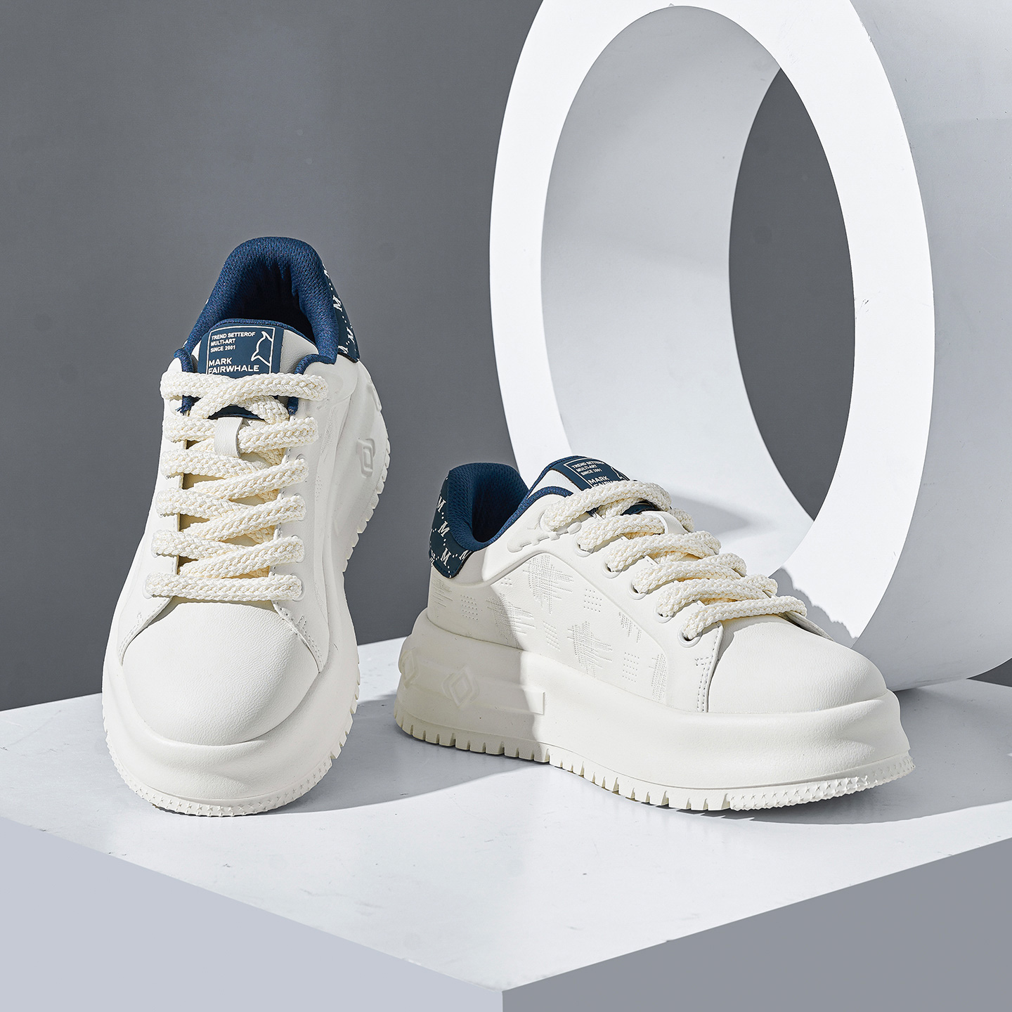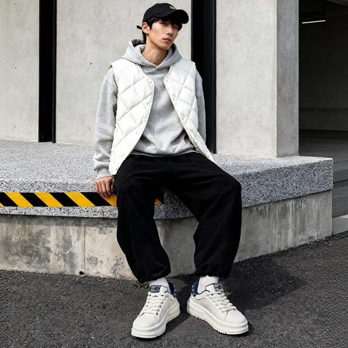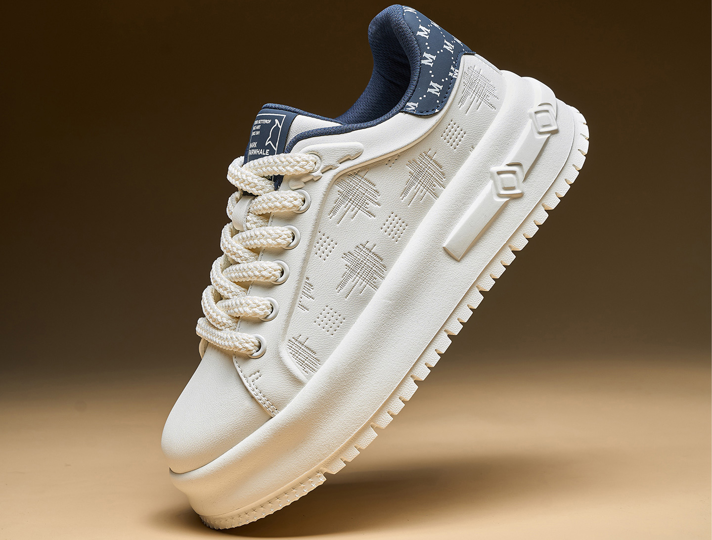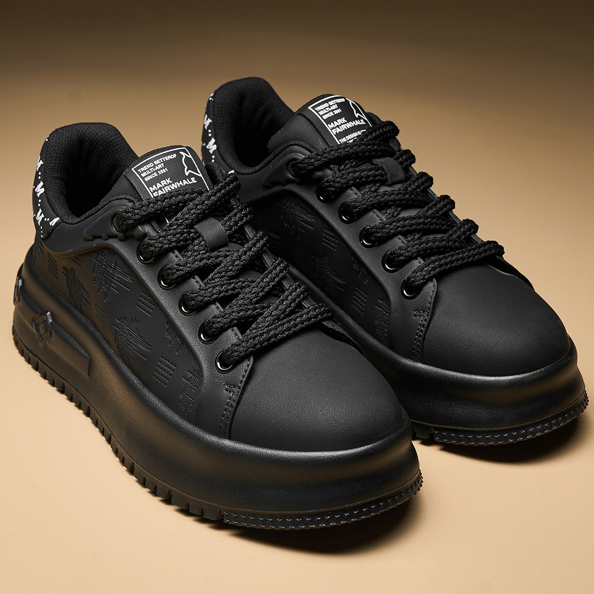 Textural Design Breathable Leather Platform Skate Shoes with Brand Print and Embossed Sole