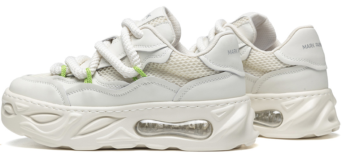 The sculpted platform design subtly adds 4 cm (1.57 inches) of height, elongating the legs; the built-in visible air cushion absorbs impact and enhances rebound for a comfortable and stable wearing experience. - Chunky Woven Laces